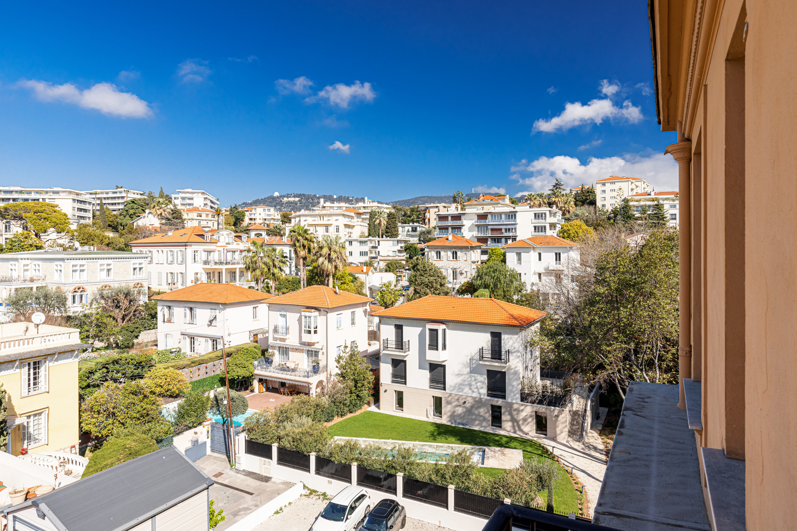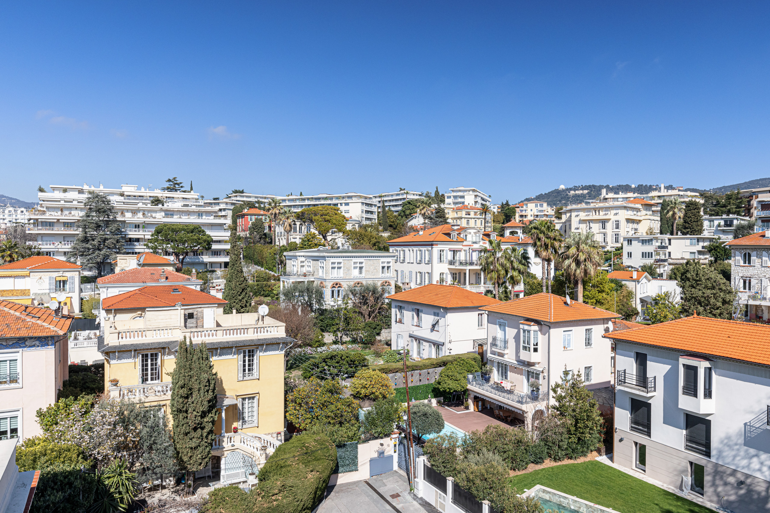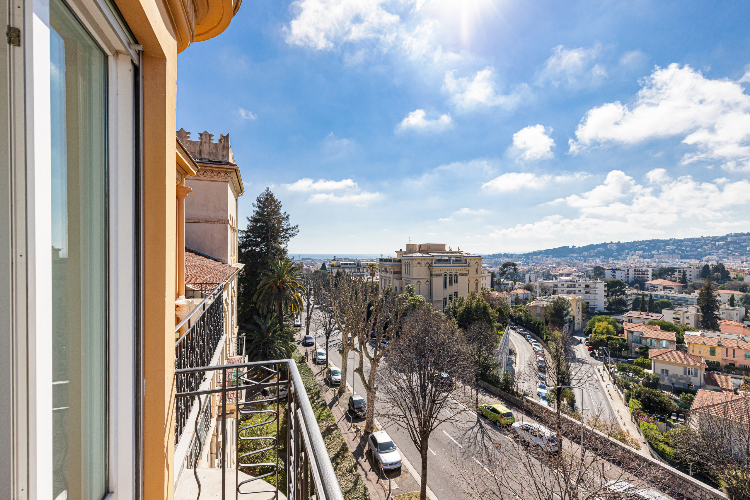Au dernier étage avec ascenseur d'un magnifique immeuble bourgeois, il vous séduira par son ensoleillement, ses oeuvres d'art, son calme et son confort : vues panoramiques sur les collines de Nice et les palais Niçois, triple exposition, aucun vis-à-vis !