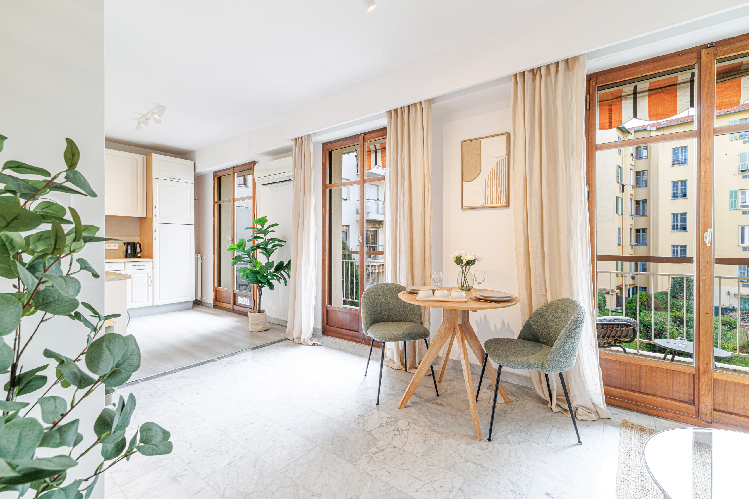 Idéal pour un couple, un séjour professionnel ou quelques jours à Nice entre mer et centre-ville, avec le confort de la clim et l’agrément d’un balcon filant — un vrai plus dans le secteur.
