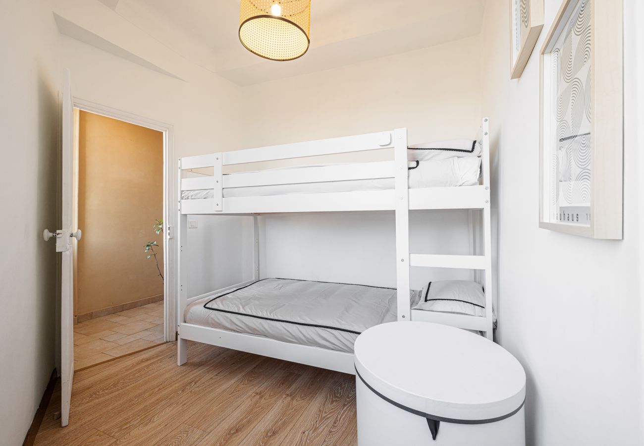 - En effet, cet appartement se prête davantage à une famille car les chambres sont en enfilade, nous devons passer par la chambre enfant avec les deux lits superposés pour se rendre dans la chambre parentale avec lit double de taille standard.