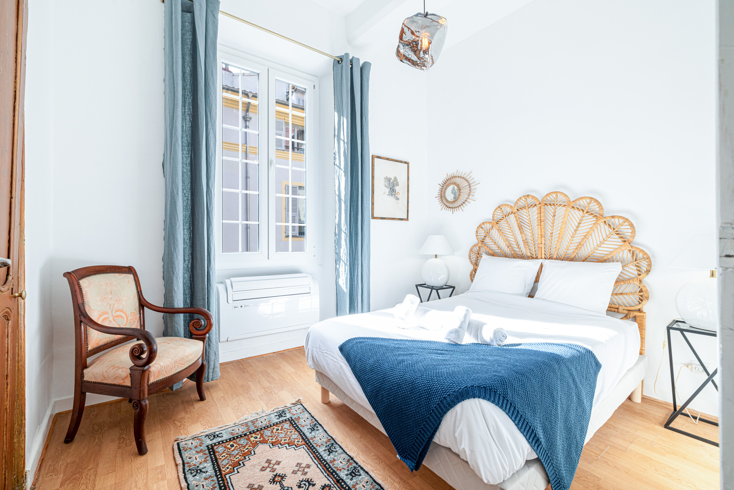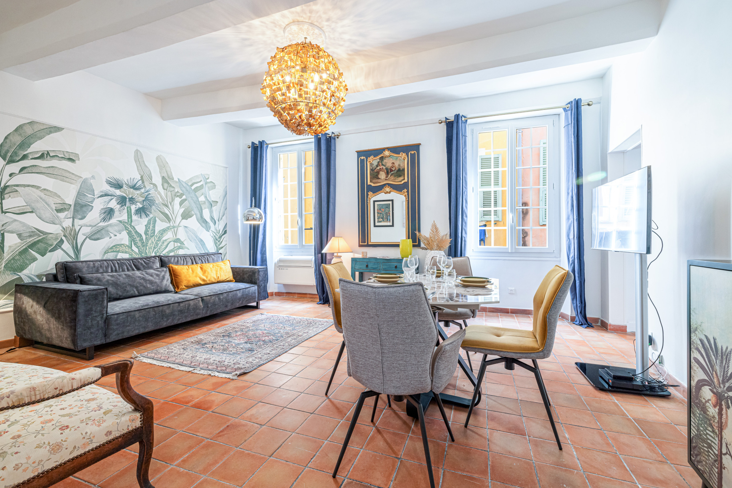 A deux pas du marché du Cours Saleya et de ses couleurs azuréennes, venez séjourner dans ce magnifique appartement décoré avec goût, entièrement climatisé, au 3ème étage sans ascenseur d’un immeuble niçois.
