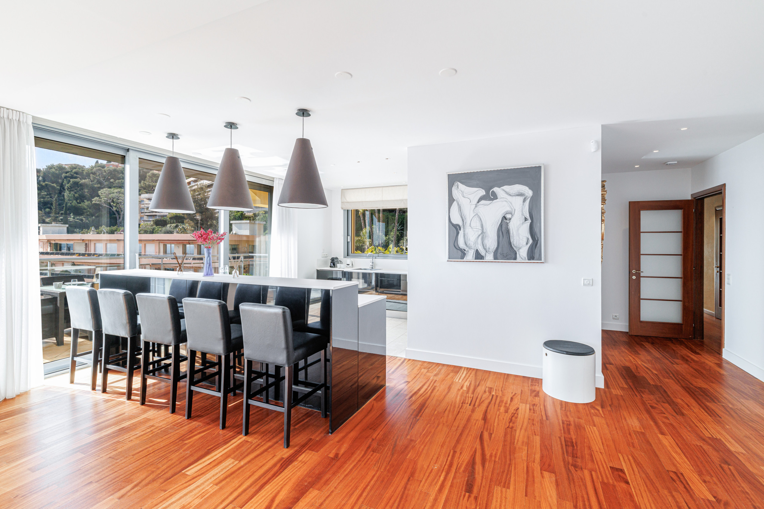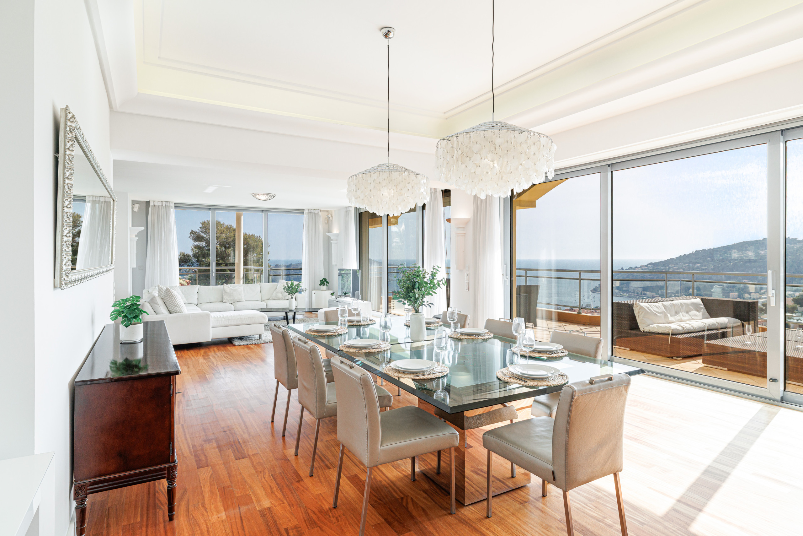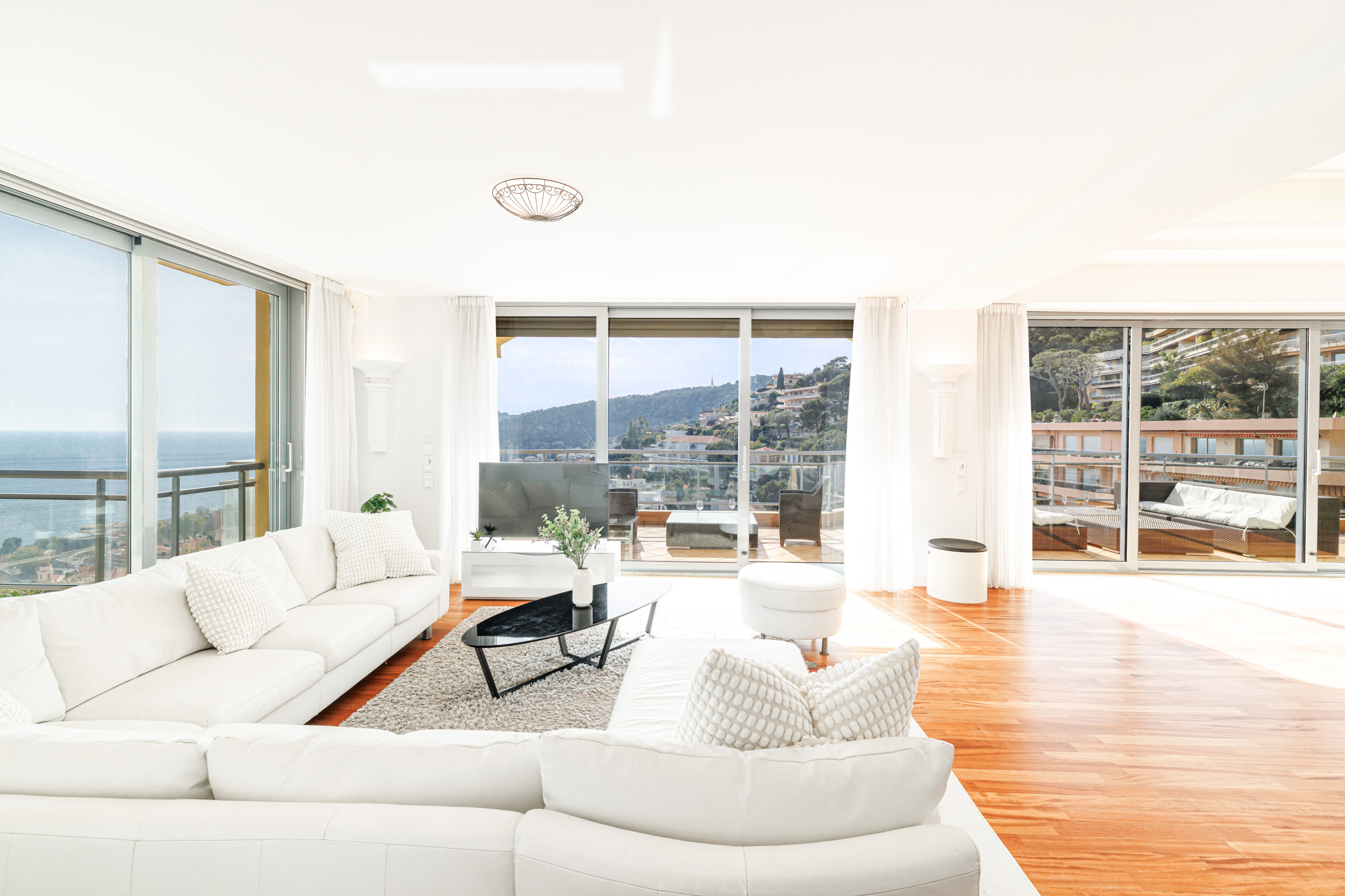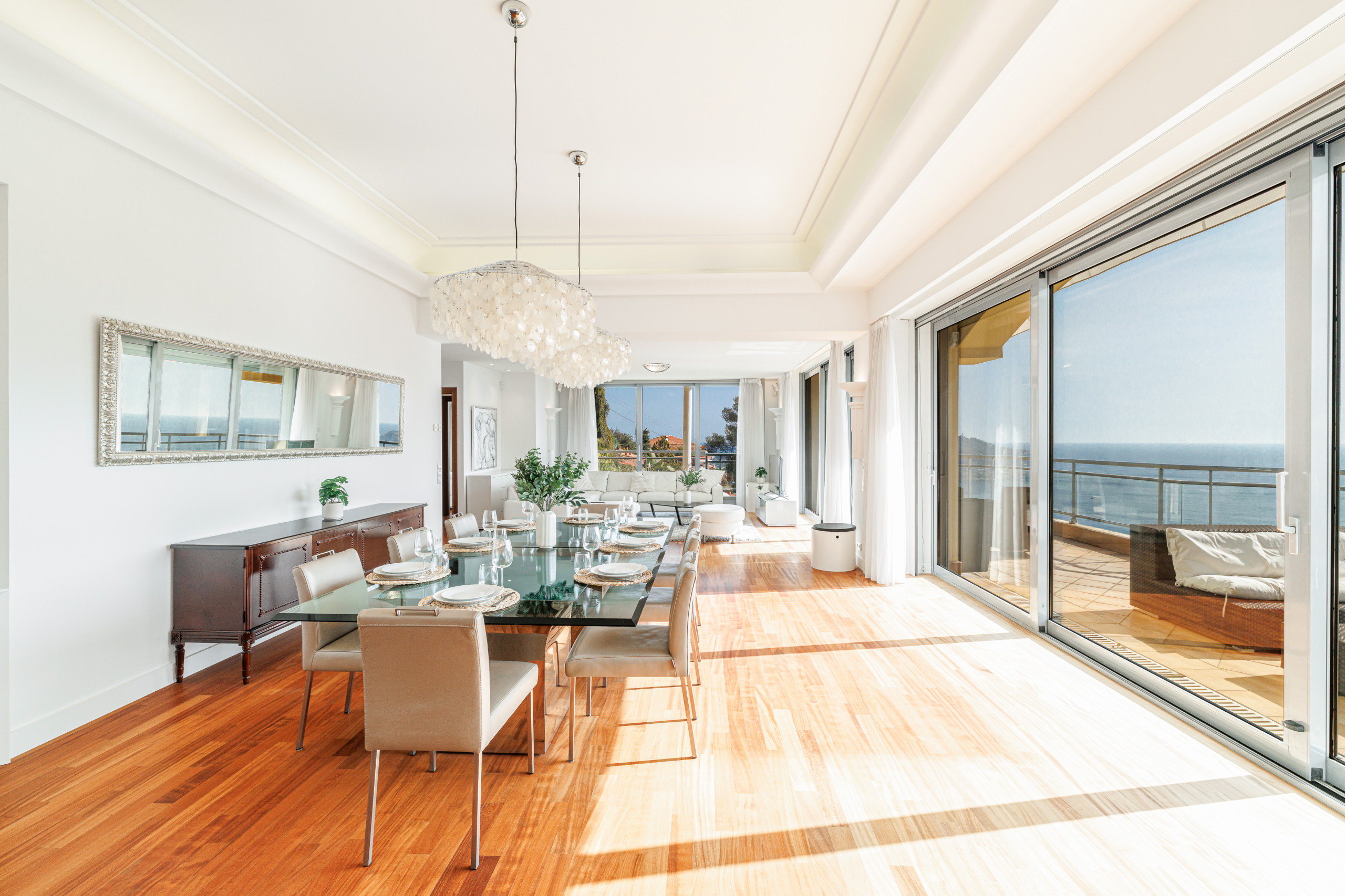 Baigné de lumière grâce à son exposition sud-ouest, l’appartement offre des couchers de soleil exceptionnels sur la Méditerranée et un cadre unique pour un séjour sur la Côte d’Azur.