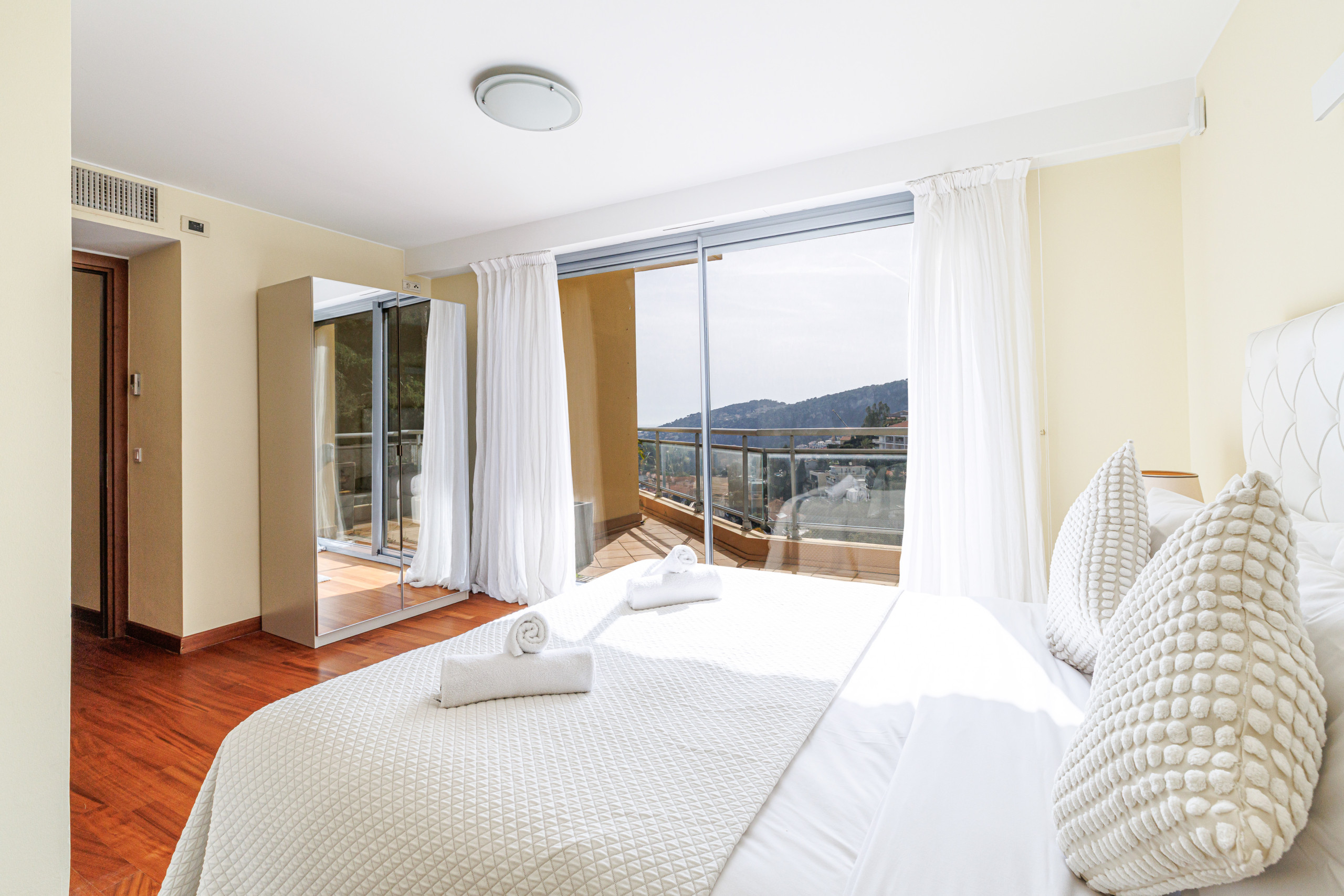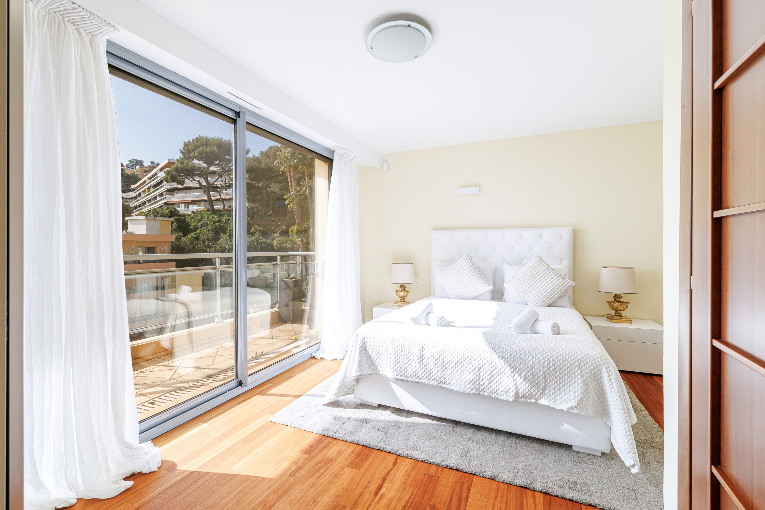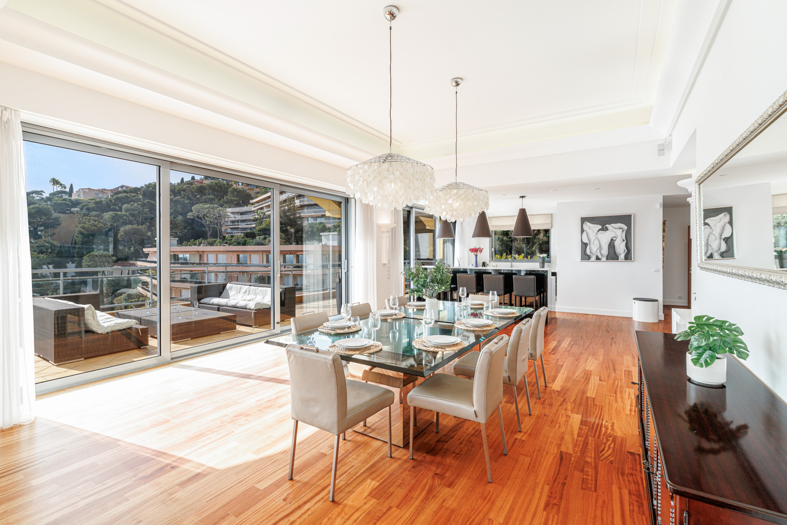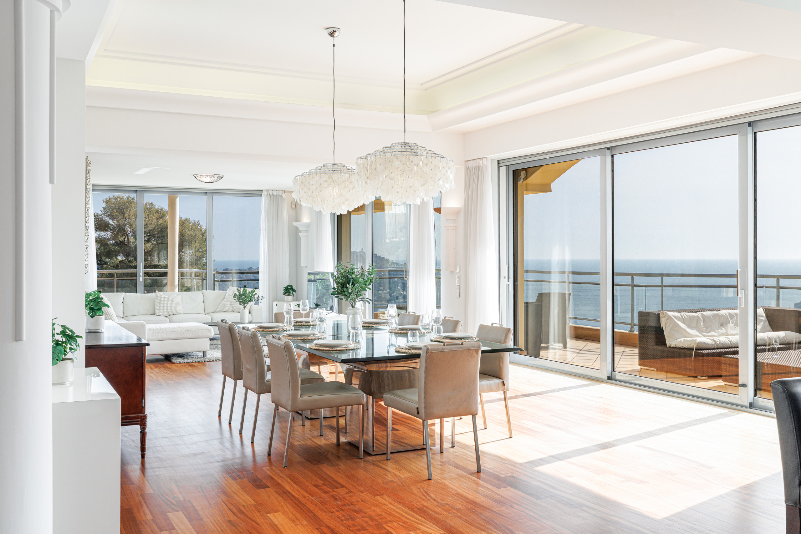 Baigné de lumière grâce à son exposition sud-ouest, l’appartement offre des couchers de soleil exceptionnels sur la Méditerranée et un cadre unique pour un séjour sur la Côte d’Azur.
