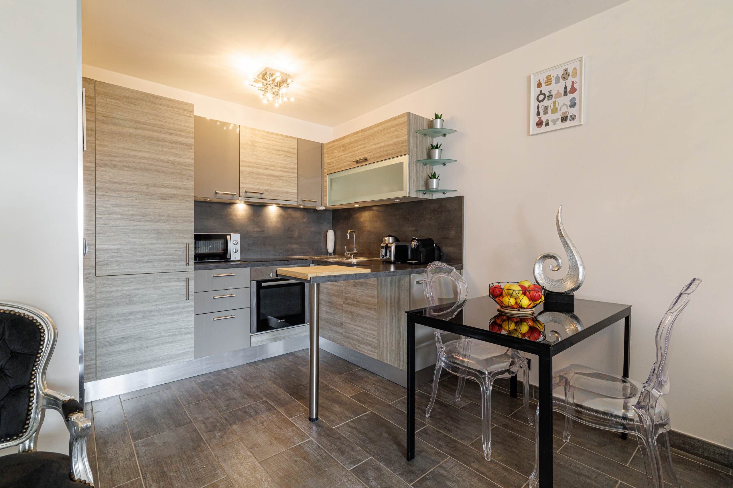 • Une cuisine entièrement équipée : lave-vaisselle, plaques de cuisson, four, micro-ondes, réfrigérateur, machine Nespresso, bouilloire, grille-pain