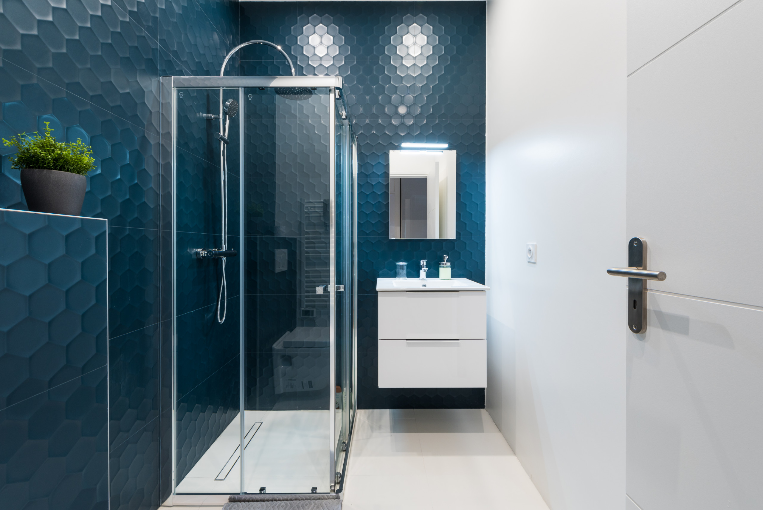 Douche à l’italienne, lavabo, WC et sèche-serviettes pour un confort optimal.
