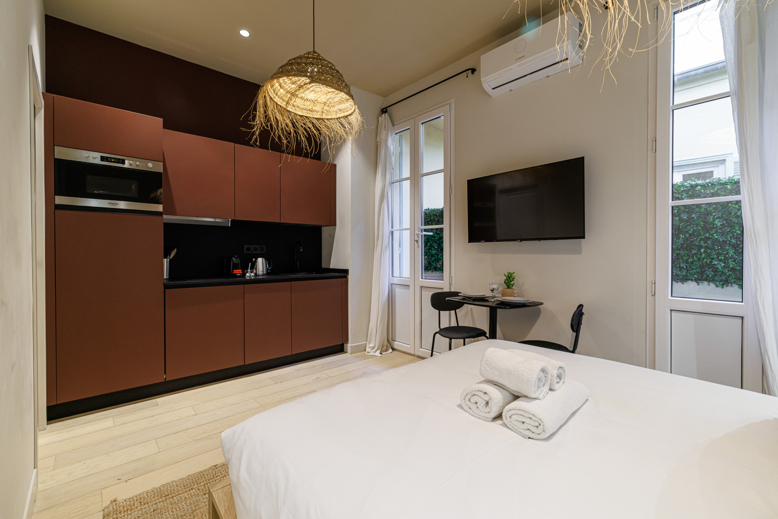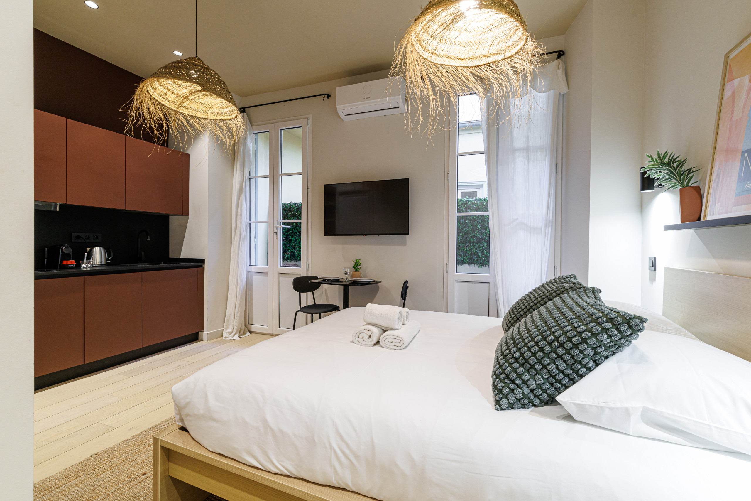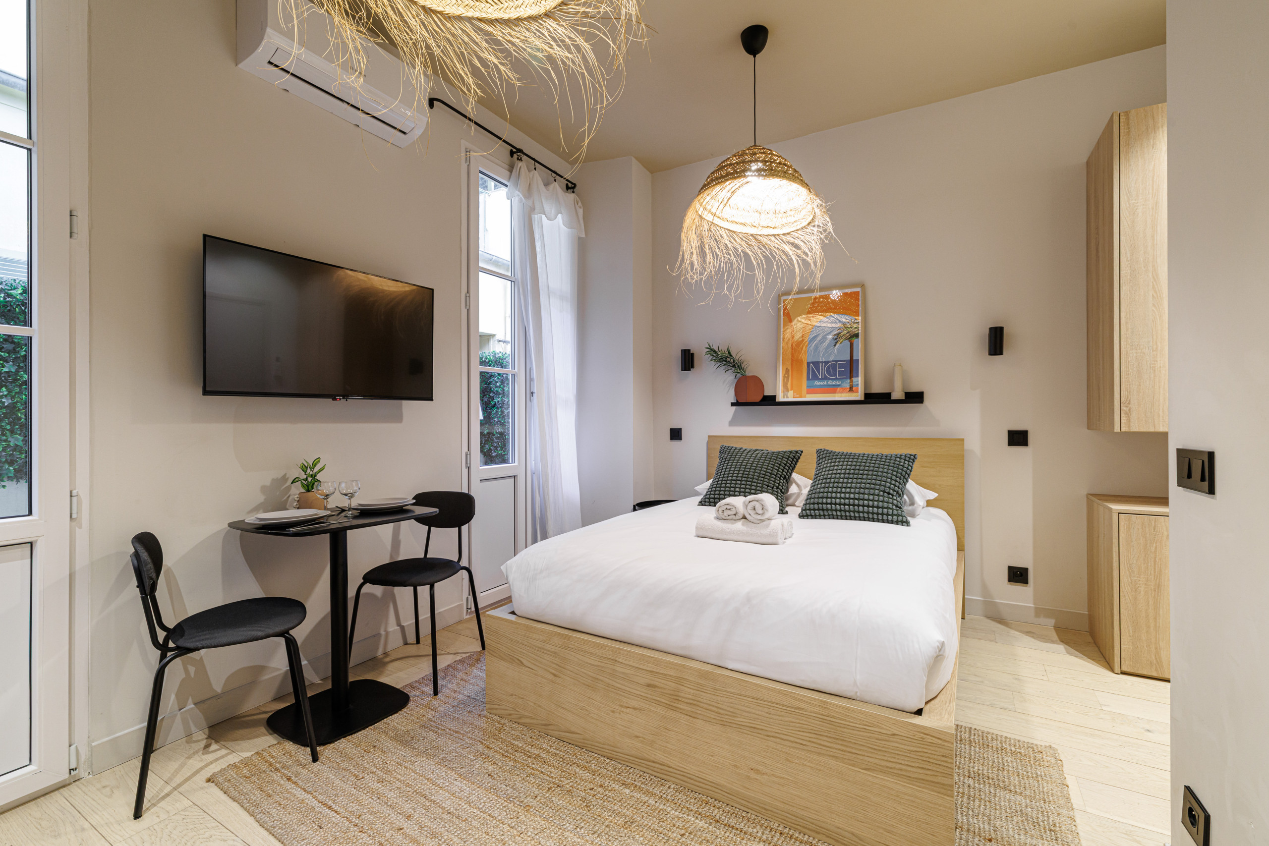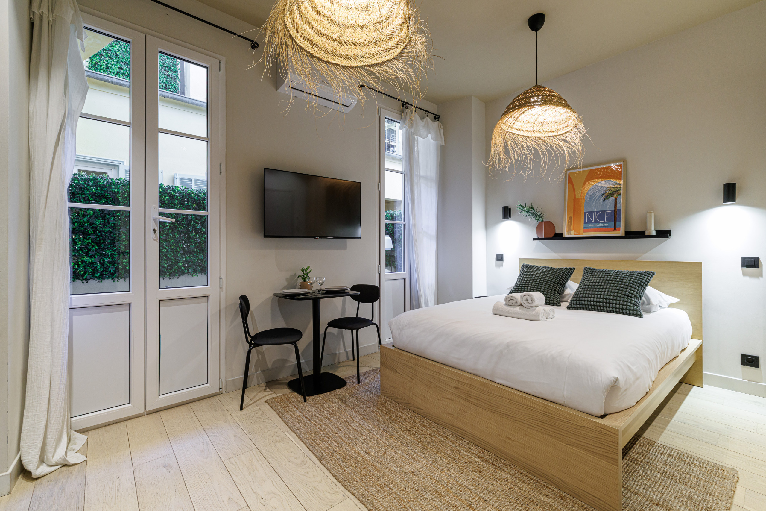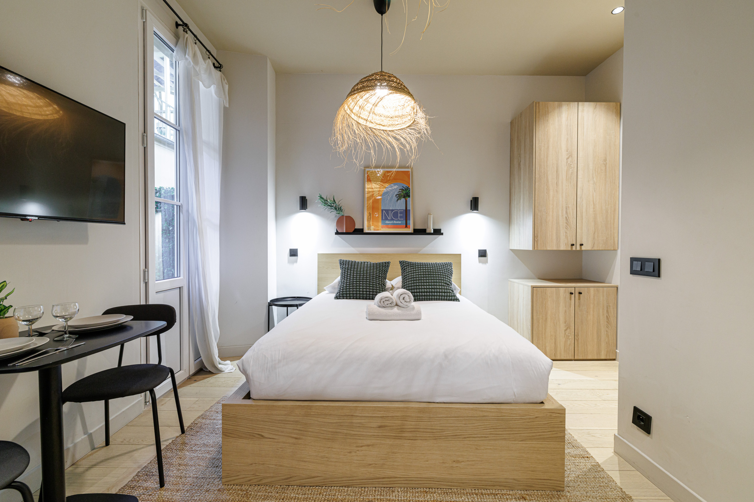 En plein cœur du quartier du port à Nice & à deux pas de sa jolie Place du Pin, découvrez notre petit pied-à-terre entièrement climatisé à la décoration mêlant styles moderne & bohème.