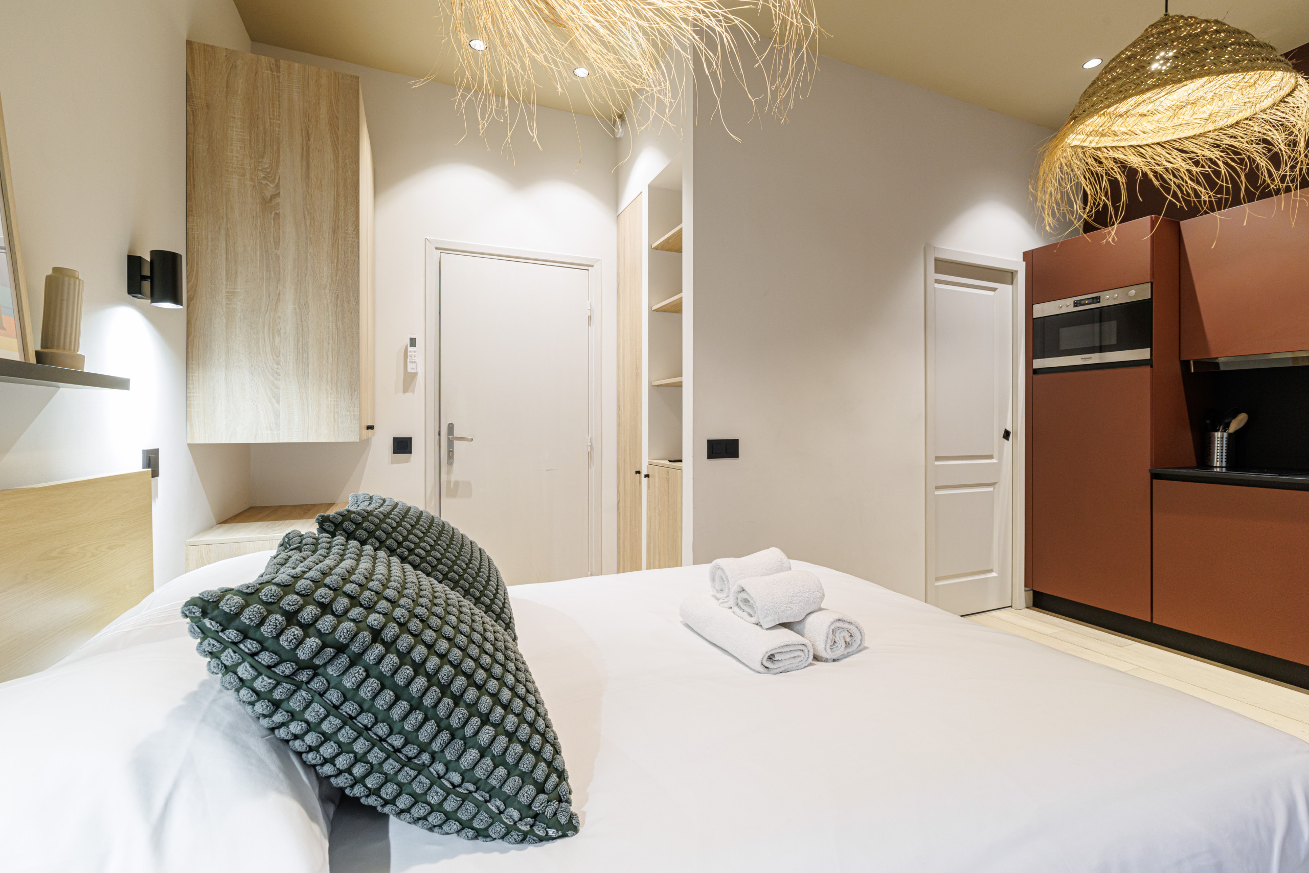 - D’une pièce à vivre agréable avec cuisine ouverte équipée d’un réfrigérateur & d’un freezer, d’un four micro-ondes, d’un lave-vaisselle, machine à Nespresso, bouilloire, machine à laver & plaques à induction.