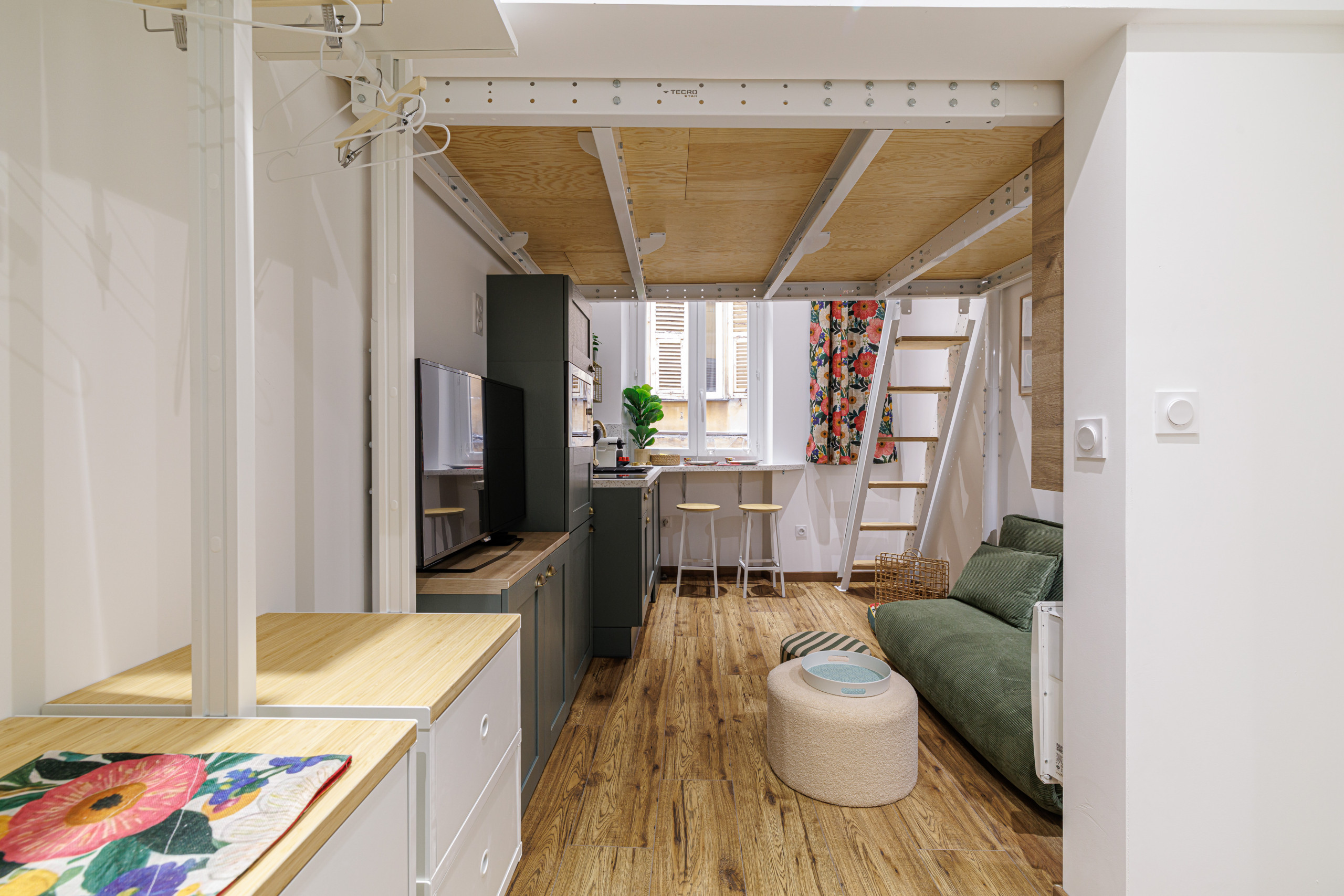 Ce studio de 14 m² a été pensé pour offrir un maximum de confort dans un espace compact et chaleureux.