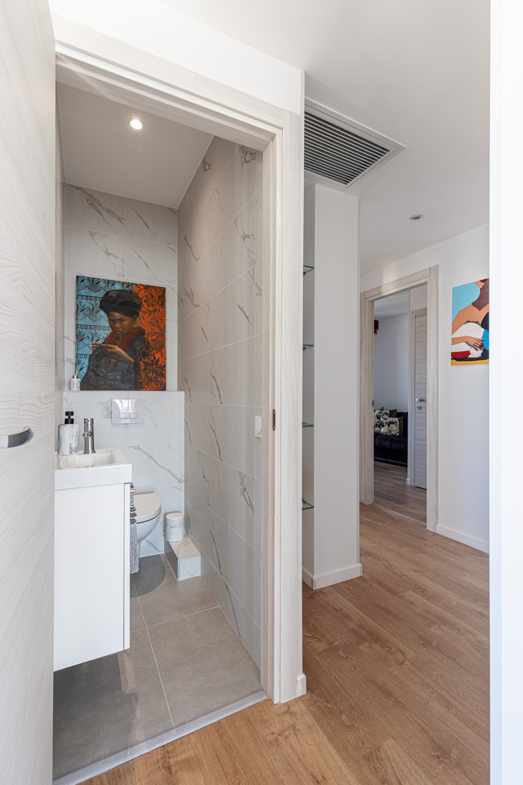 - the toilet is separate and is located in the corridor of the apartment