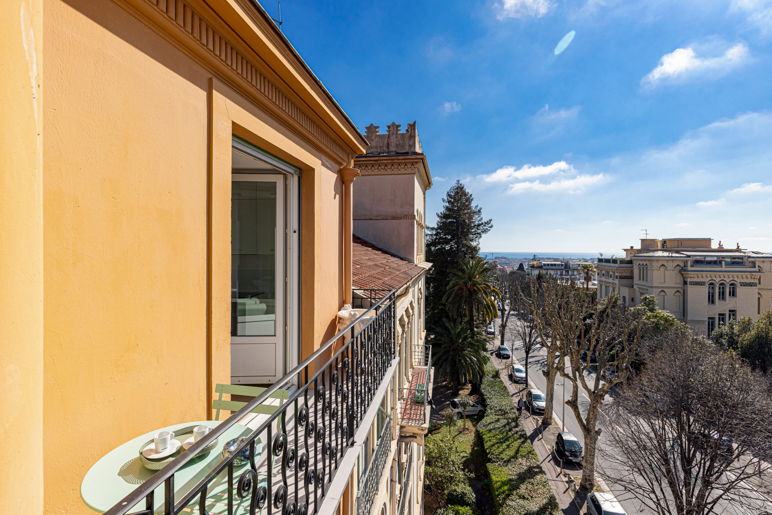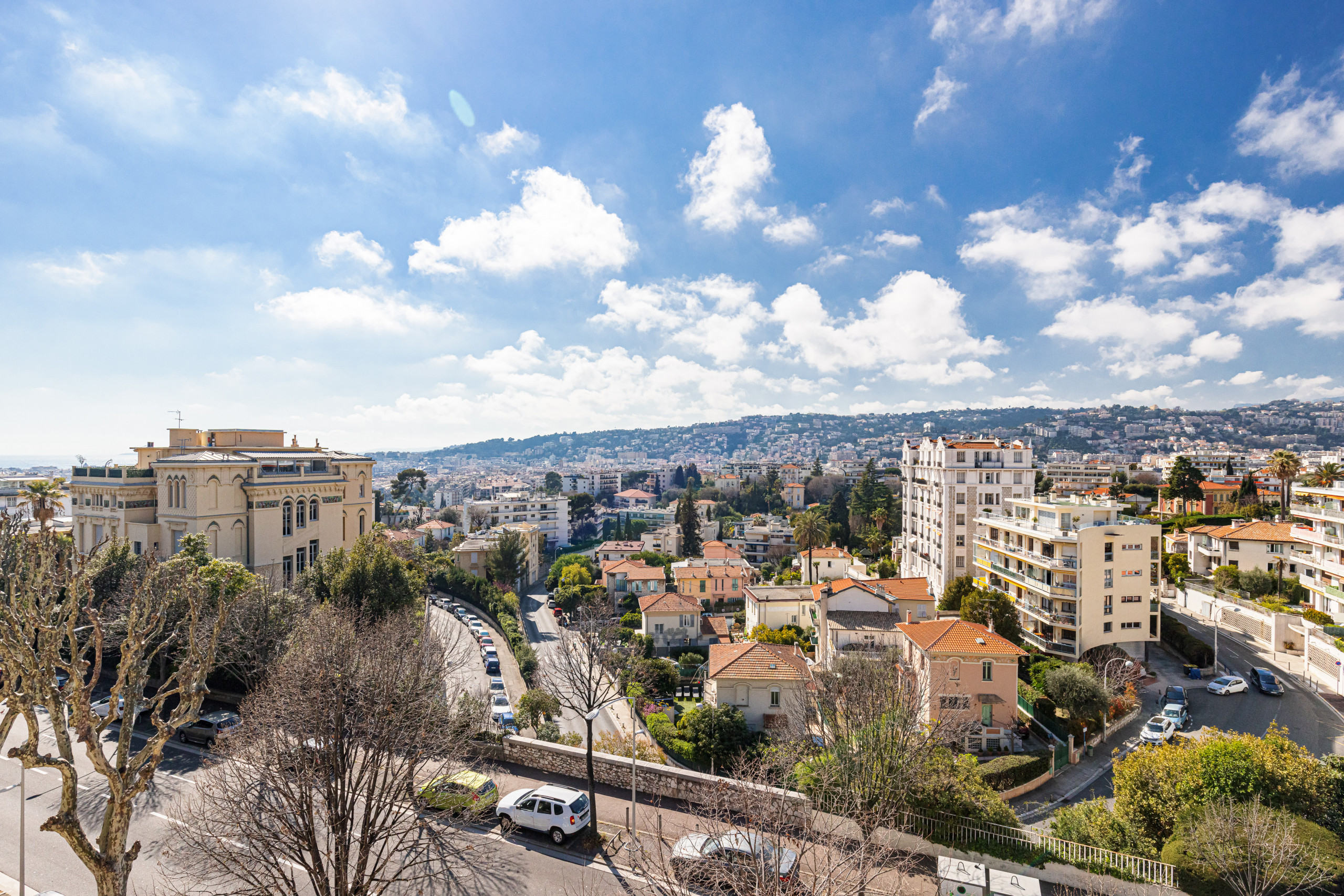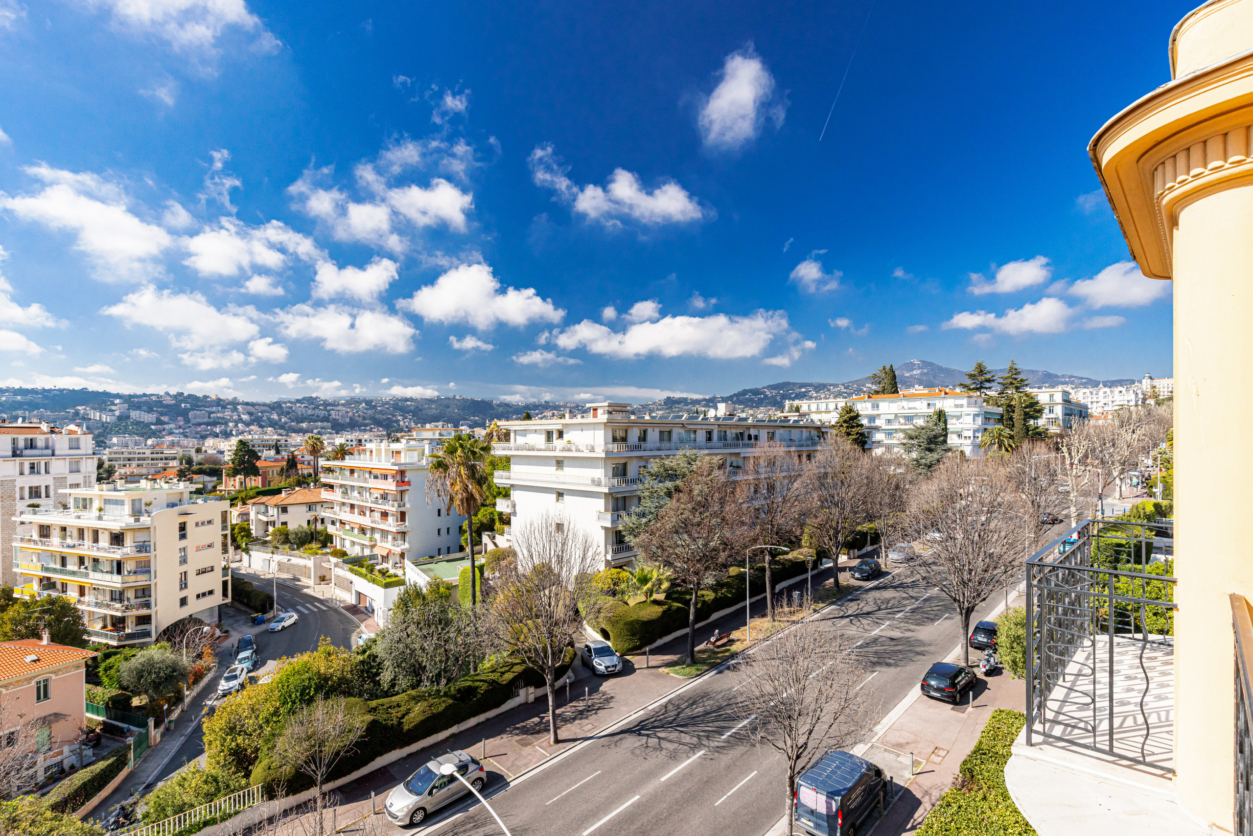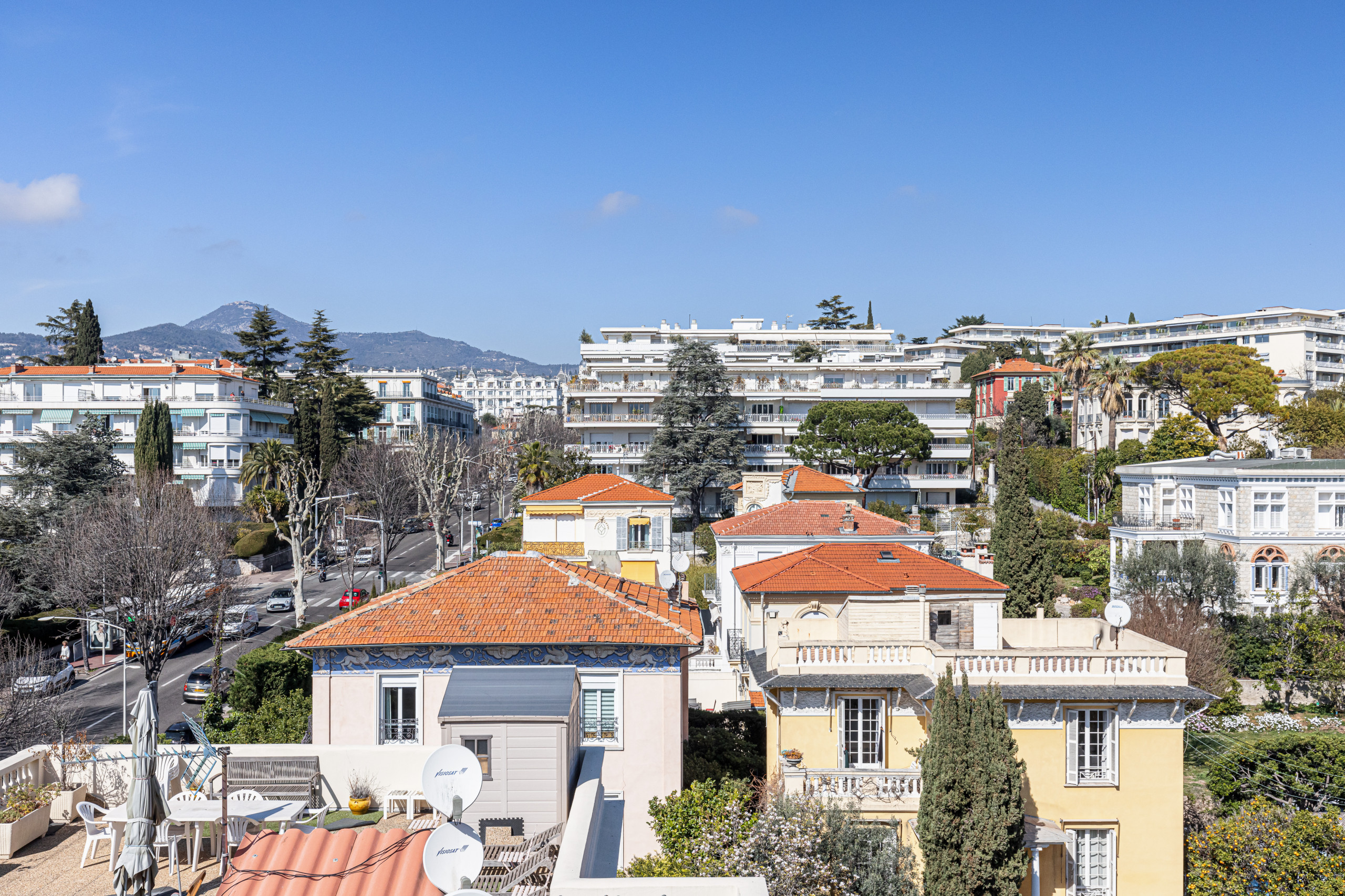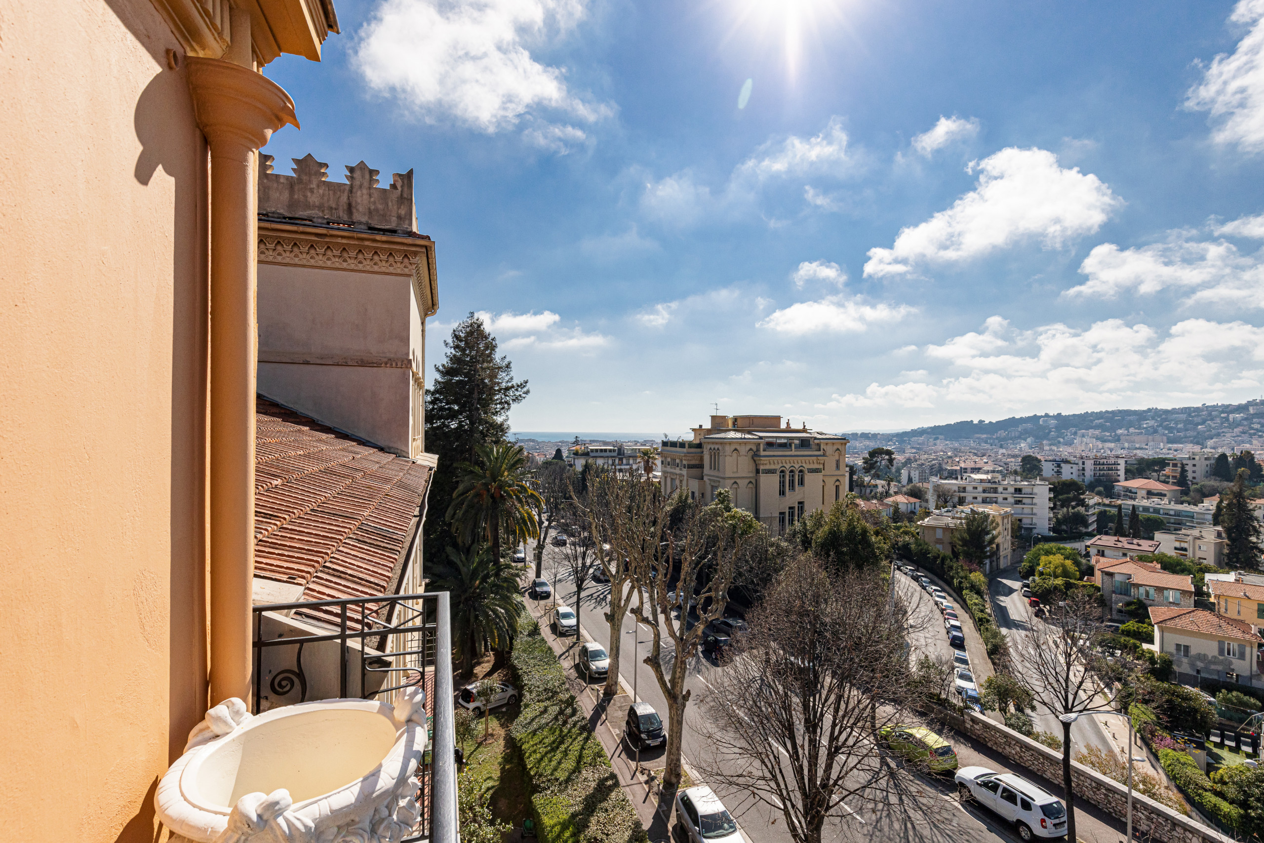 On the top floor with elevator of a magnificent bourgeois building, it will seduce you by its sunshine, its works of art, its calm and its comfort: panoramic views on the hills of Nice and the palaces of Nice, triple exposure, no opposite!