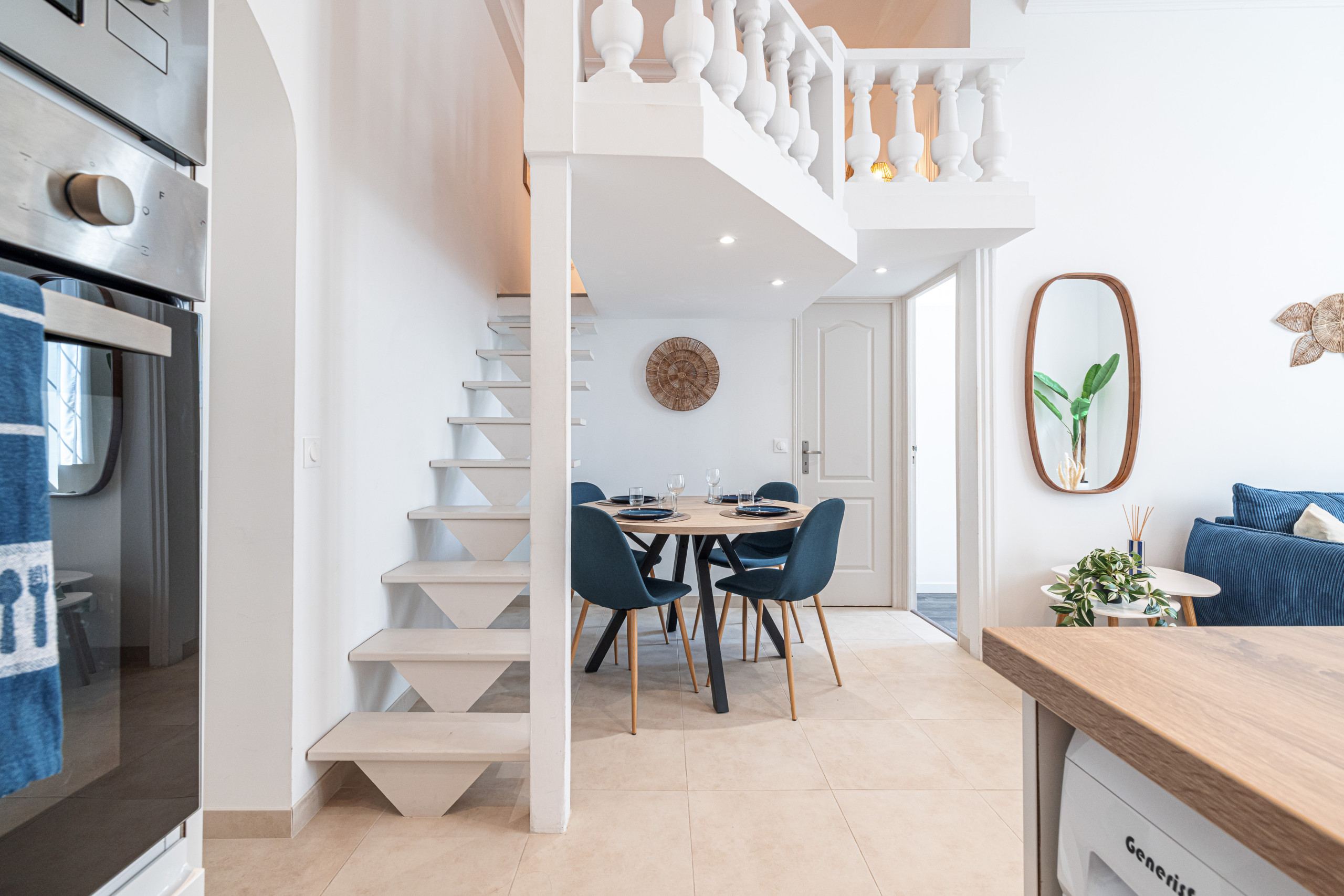 Located on the first floor of a building in Nice, with just a few steps up to the lift, the flat is quiet and fully air-conditioned (except for the mezzanine, which opens onto the living room and benefits from air-conditioning in the room below). With its Mediterranean style, it's sure to become your dream retreat for discovering Nice, the pearl of the Côte d'Azur.