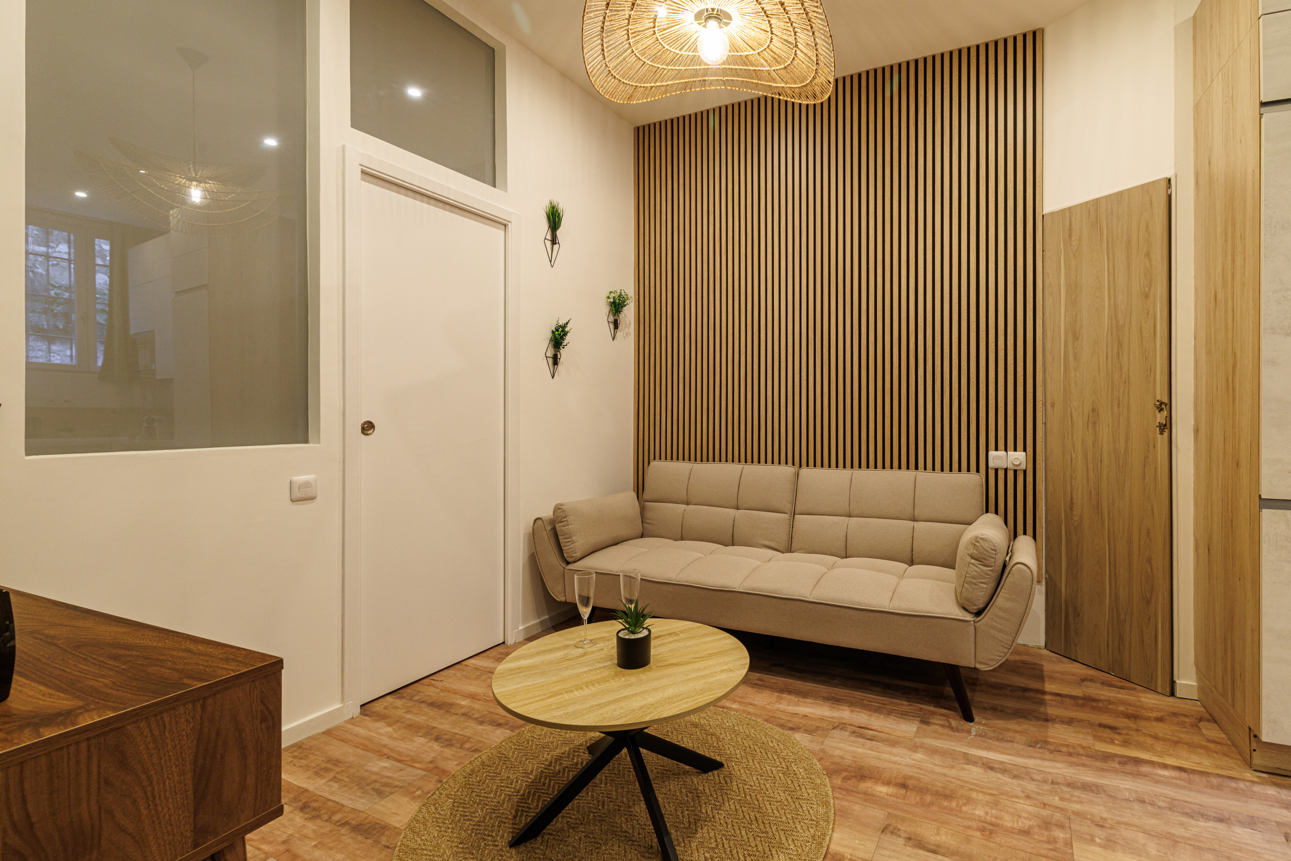 Located on the ground floor with a private entrance, this apartment offers comfort, convenience, and tranquility for a stay for two on the French Riviera.