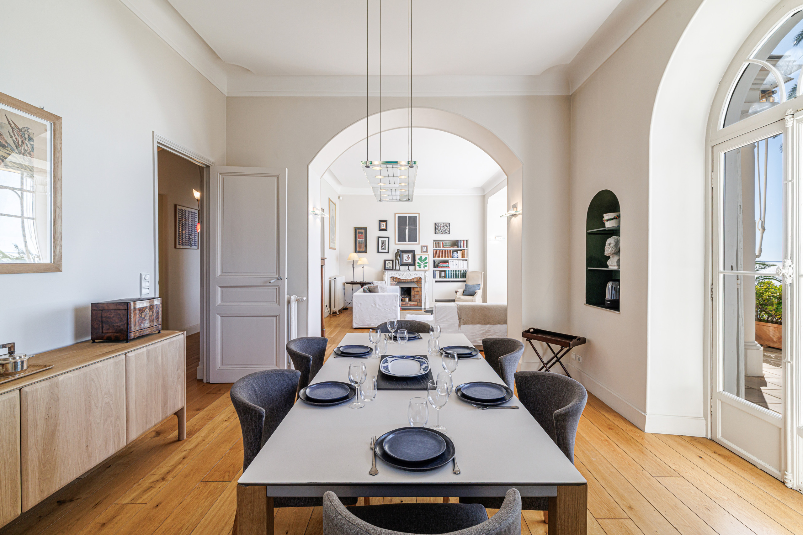 Situated on the ground floor of the renowned Villa Lyse, built in 1862 by architect Victor Sabatier, this 160 m² apartment combines historical character, generous volumes, and a panoramic sea view.