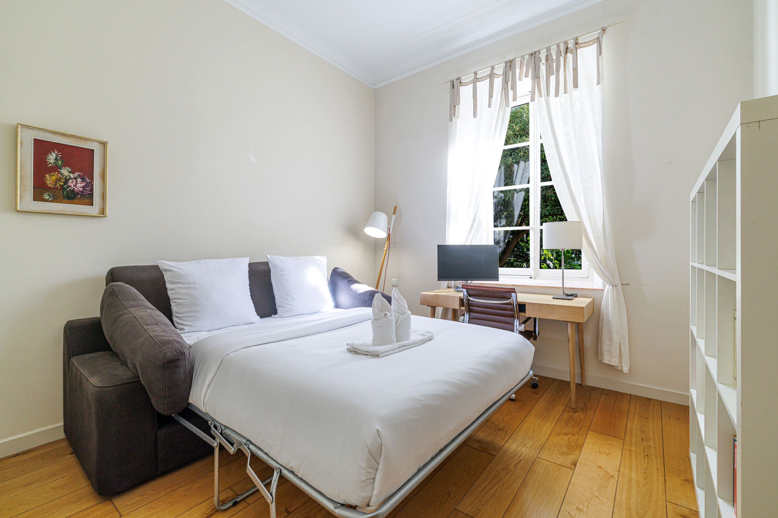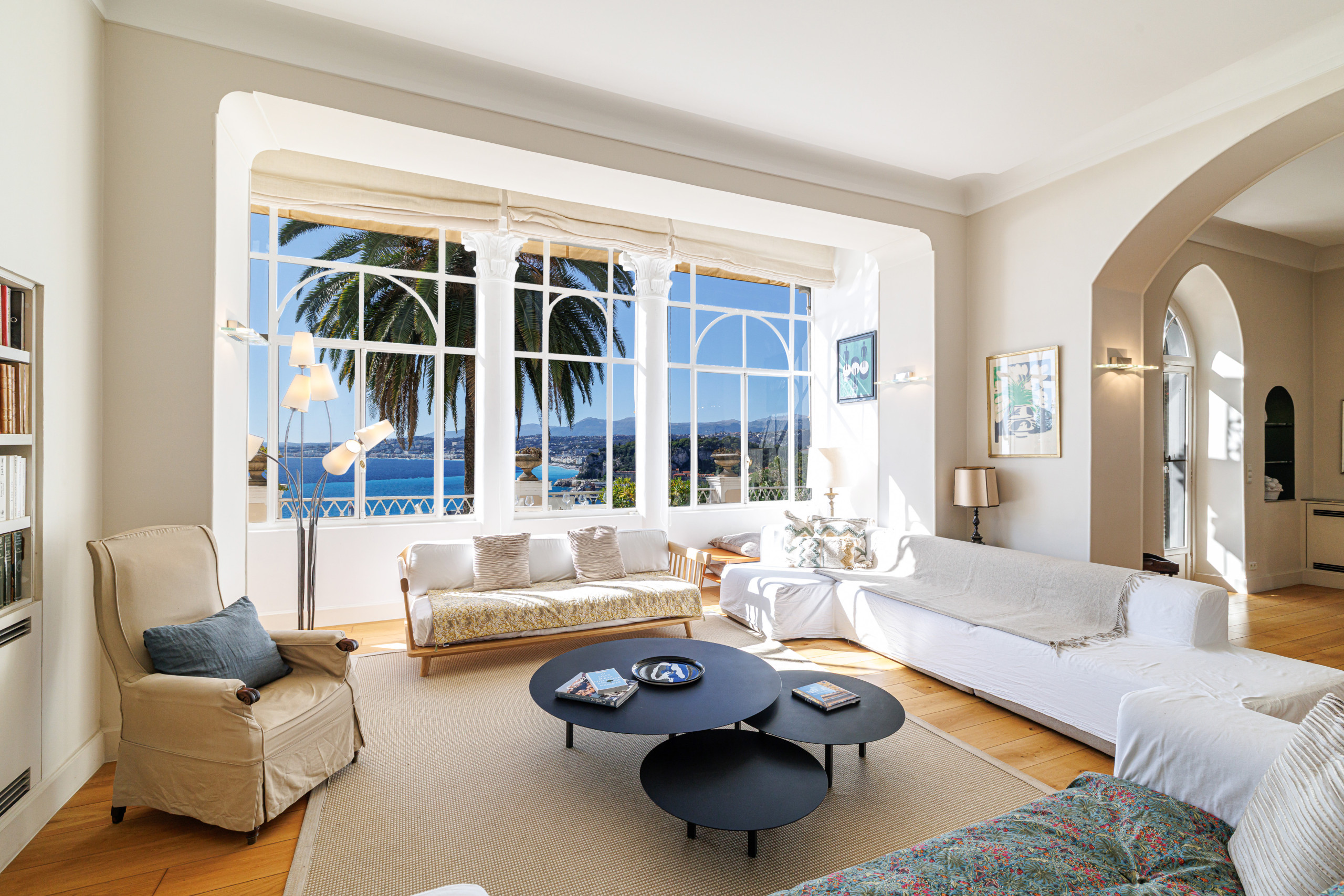 This single-level, four-room apartment occupies the entire main floor of Villa Lyse, one of Mont Boron’s emblematic residences.
