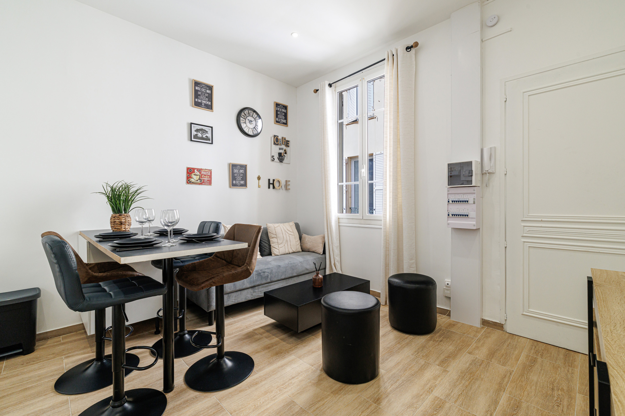 The apartment is located in the Riquier district, a lively and convenient area of Nice.