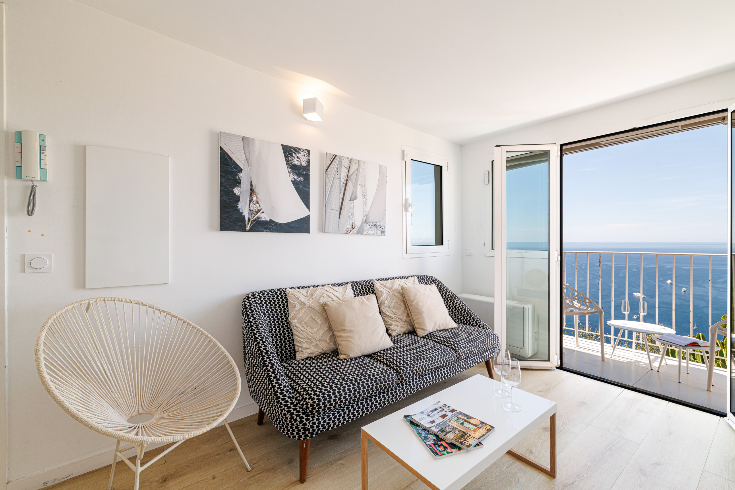 Small corner of paradise for this superb DUPLEX (23 m²) completely RENOVATED with sublime SEA VIEW (bay of Villefranche-sur-Mer and St Jean Cap Ferrat), facing south with balcony.