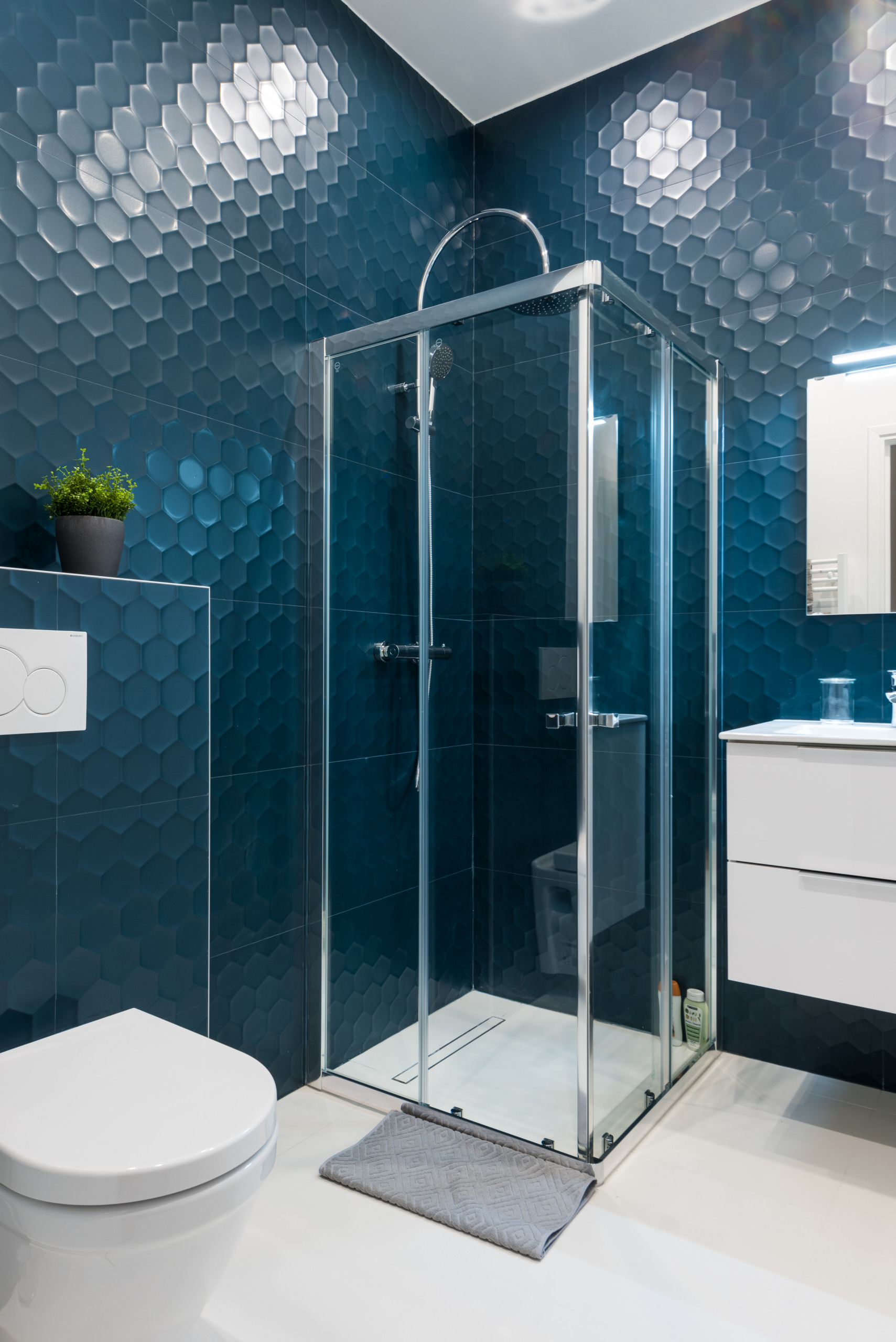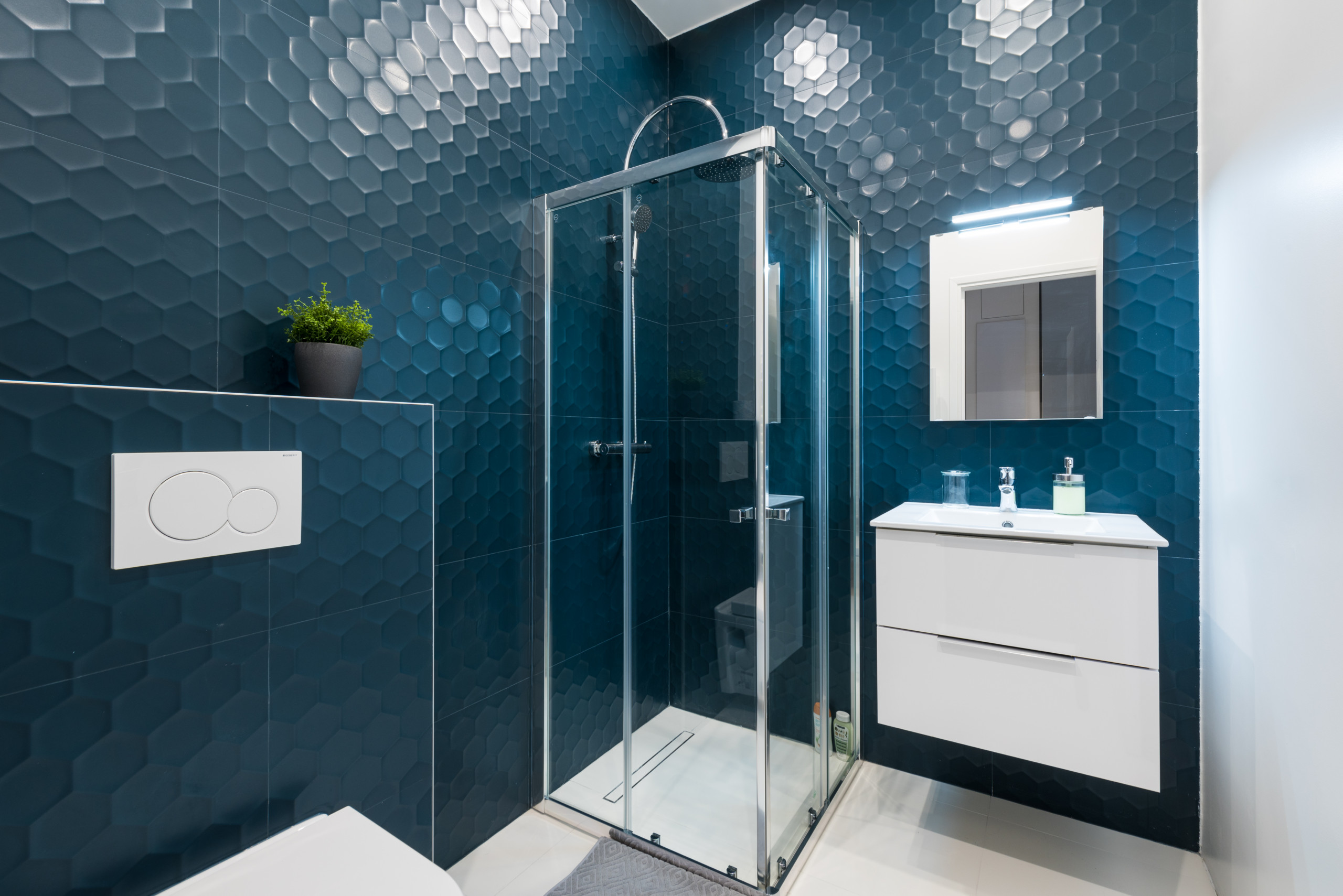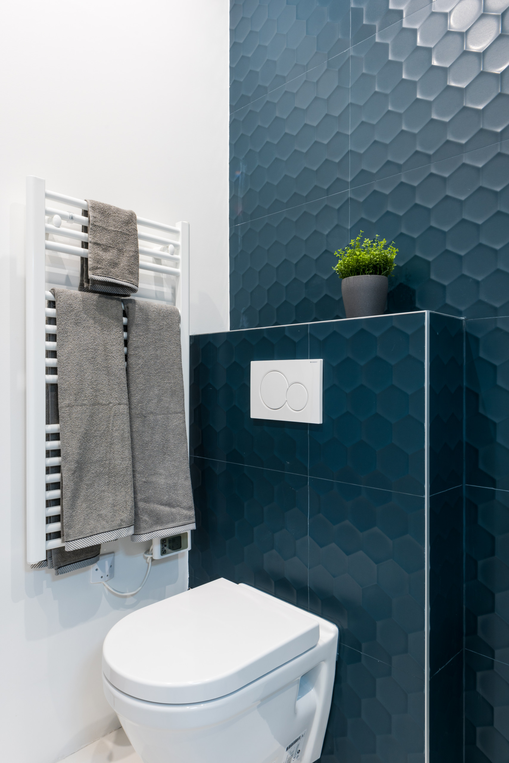 Walk-in shower, washbasin, WC and towel radiator for optimal comfort.