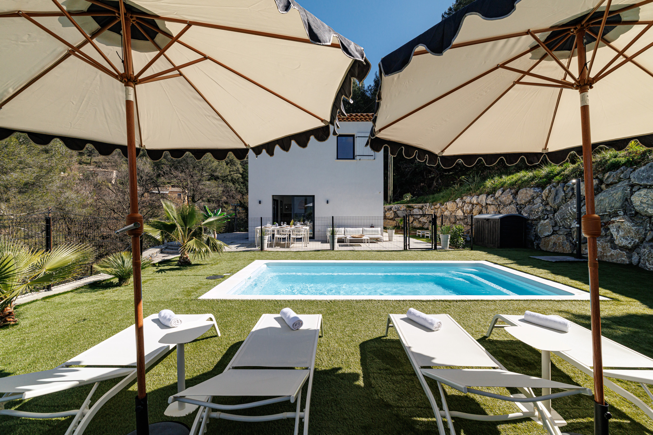 This charming villa offers everything you need for an unforgettable holiday. With its 3 spacious bedrooms (2 Queen size 160cm and one bedroom with 2 double beds), a large bathroom with shower and bath, a fully equipped kitchen with fridge-freezer, hob, oven, microwave, Nespresso coffee machine, dining room and living room, this villa is designed for your ultimate comfort. Enjoy moments of relaxation in the open air thanks to its outdoor area, which includes garden furniture and a dining table.